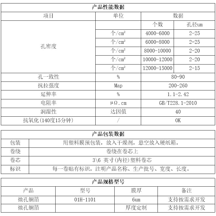 As an electrode material for lithium -ion batteries, microne -hole copper foil has high electrical and large -scale surface area, which can improve the battery's charging and discharge efficiency and energy density. The micro -hole structure can increase the contact area of the electrode and the electrolyte, increase the speed of ion transmission, and increase the performance and cycle life of the battery.