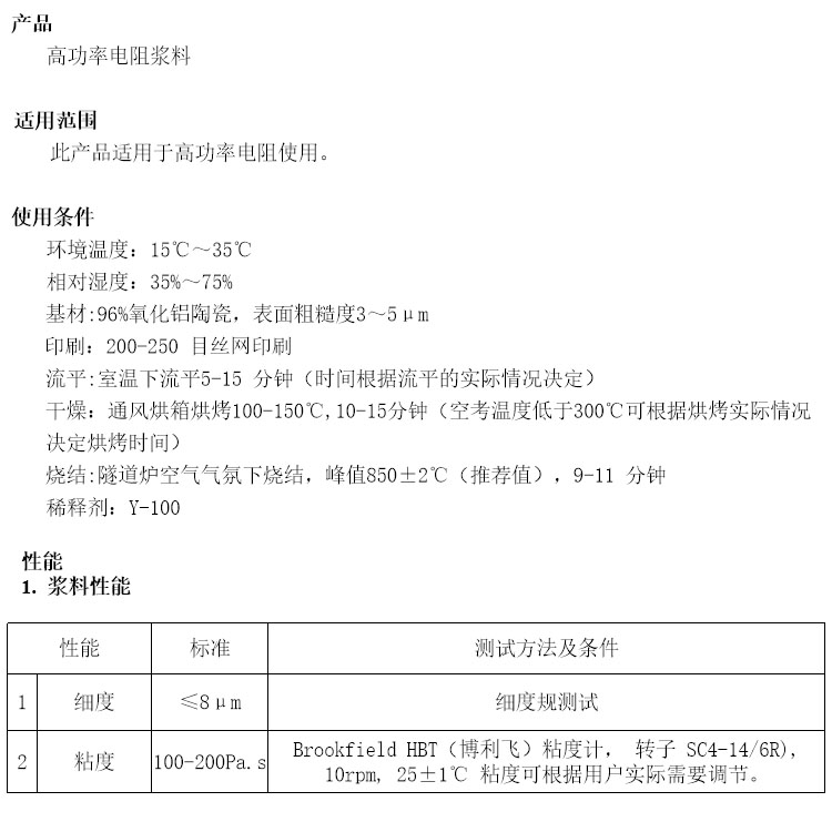 High power resistor paste is mainly composed of conductive phase, insulating phase (such as ceramic powder), binder (such as glass powder), and organic carrier. Among them, the conductive phase is usually made of highly conductive metal powders (such as silver, palladium, etc.), the insulating phase is used to improve resistivity and temperature resistance, the binder plays a role in bonding the conductive and insulating phases together, and the organic carrier is used to adjust the fluidity and printing performance of the slurry.